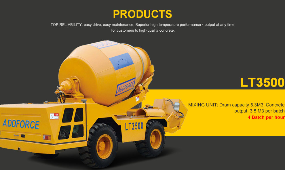 ADDFORCE Machine Co., Limited focus on the production of mobile self-loading concrete mixer. TOP RELIABILITY, easy drive, easy maintenance, Superior high temperature performance,output at any time for customers to high-quality concrete. Construction workers trusted partner.